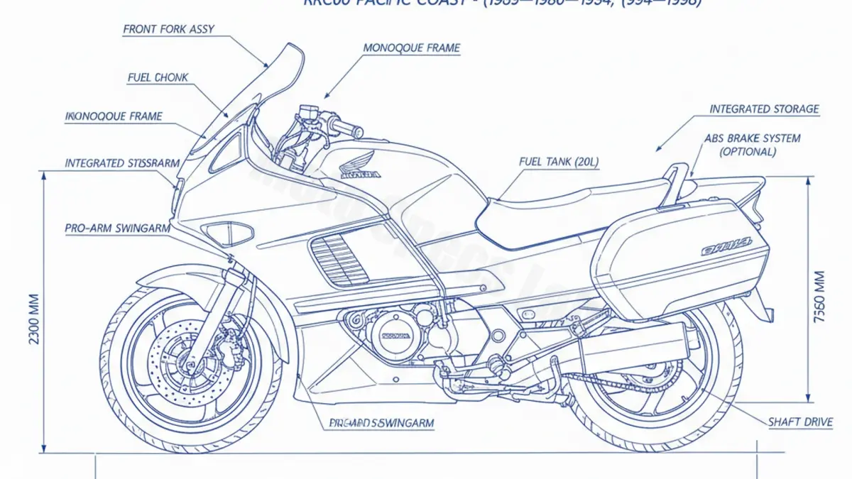 The Honda PC 800 Pacific Coast (RC34) holds a unique place in motorcycling history as the first major production motorcycle designed specifically by Honda Research of America (HRA) to target the “white-collar” non-motorcyclist. Its most radical engineering feature was the integrated, top-opening trunk that completely enclosed the rear wheel. Unlike traditional panniers, the PC 800’s trunk functioned like a car’s boot, capable of carrying two full-face helmets or two grocery bags, emphasizing utility and weather protection over raw performance.